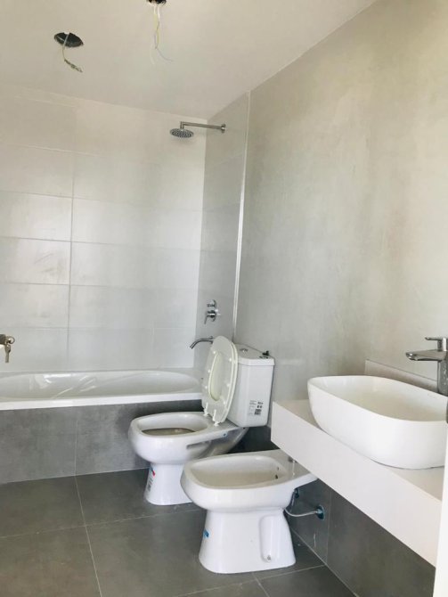 - Baño: revestido con técnica de microcemento alisado. Material empleado para mesada: Silestone. Juegos de sanitarios ROCA, bañera ROSA. Terminaciones en aluminio. Pre instalación para colocación de extractor.