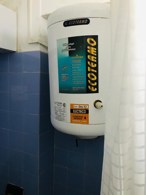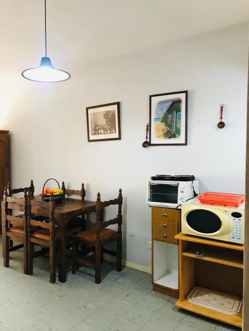 Cocina equipada de artefactos eléctricos: anafe, horno microondas, horno eléctrico y heladera con refrigerador. Vajilla completa para 4 personas. Termo tanque eléctrico.