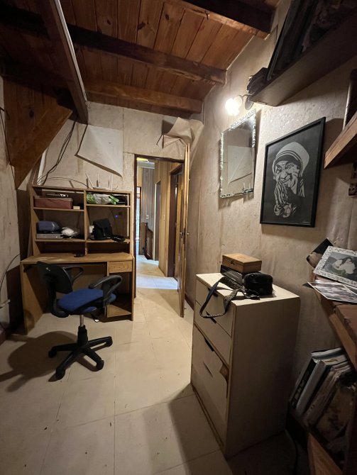 Pasillo previo a sitio pensado como espacio de trabajo, con escritorio y biblioteca.